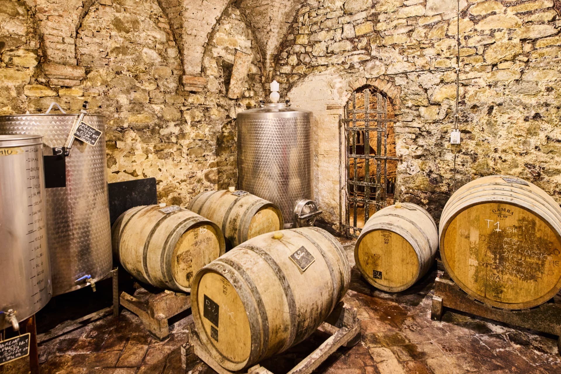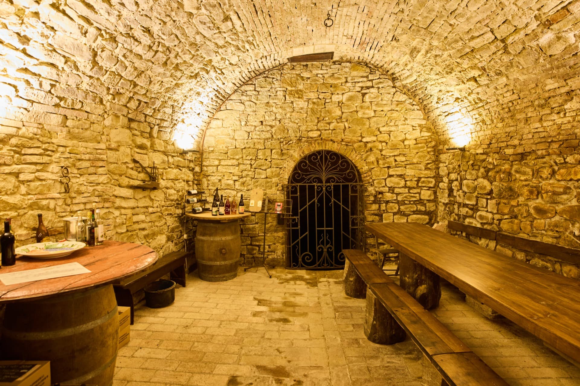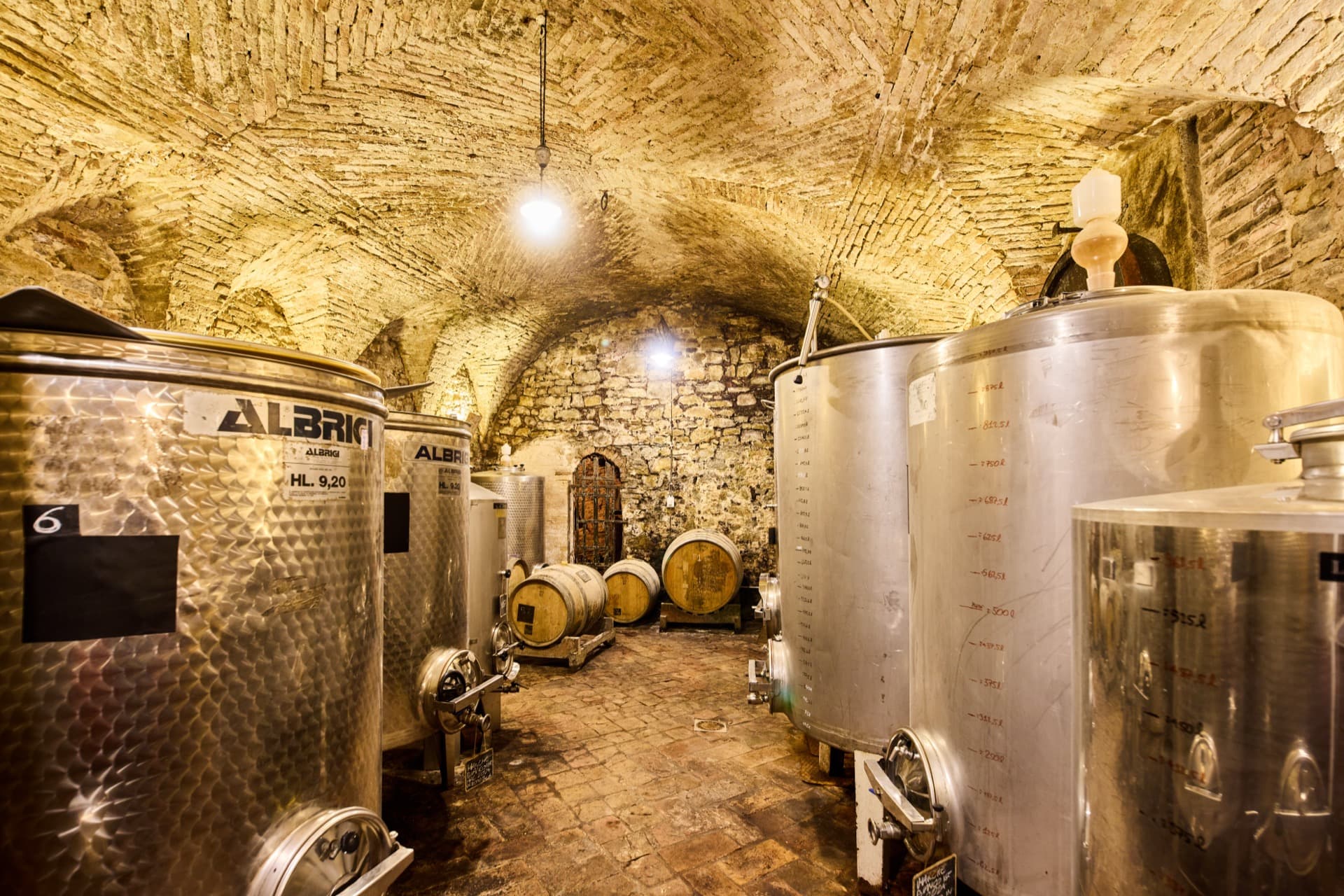 Le pareti in pietra e mattoni, insieme alle grotte in tufo dei sotterranei medievali, testimoniano una lunga storia di amore per il vino.