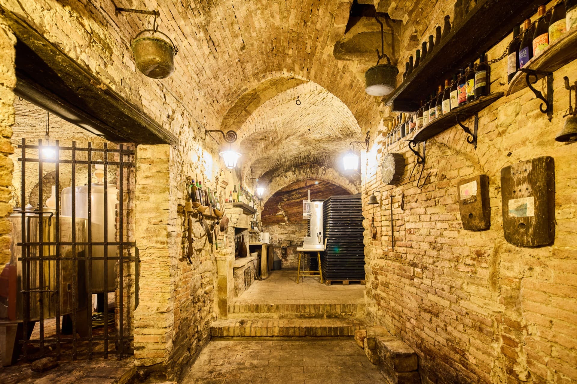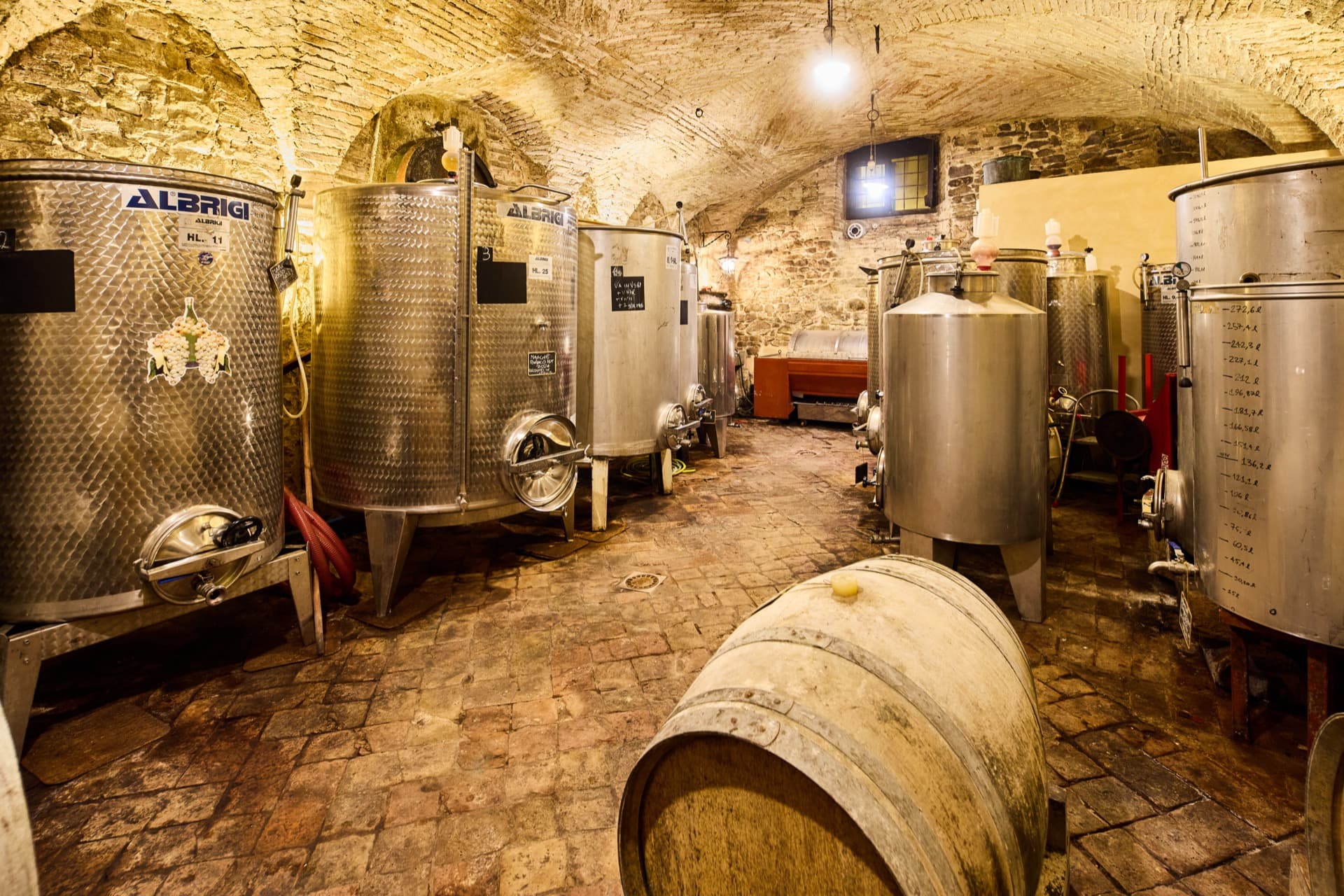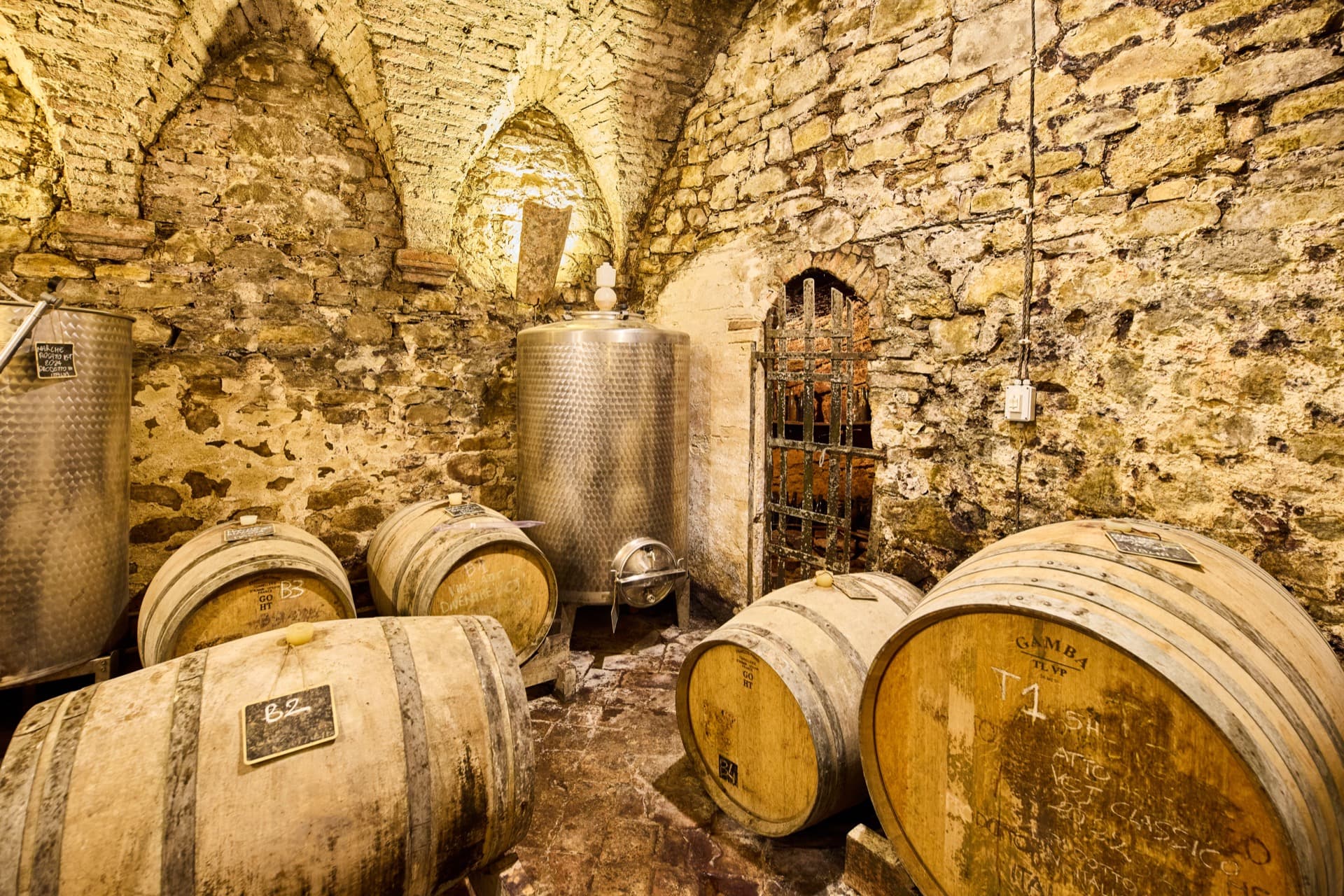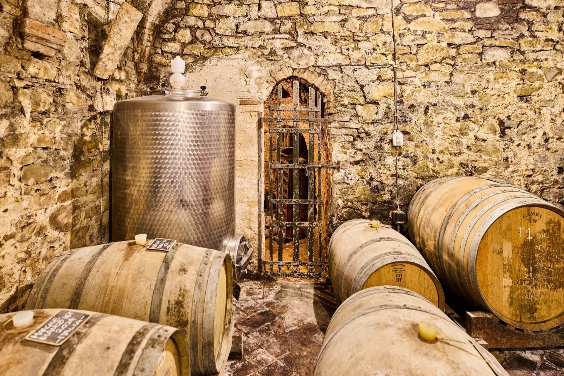 Le pareti in pietra e mattoni, insieme alle grotte in tufo dei sotterranei medievali, testimoniano una lunga storia di amore per il vino.